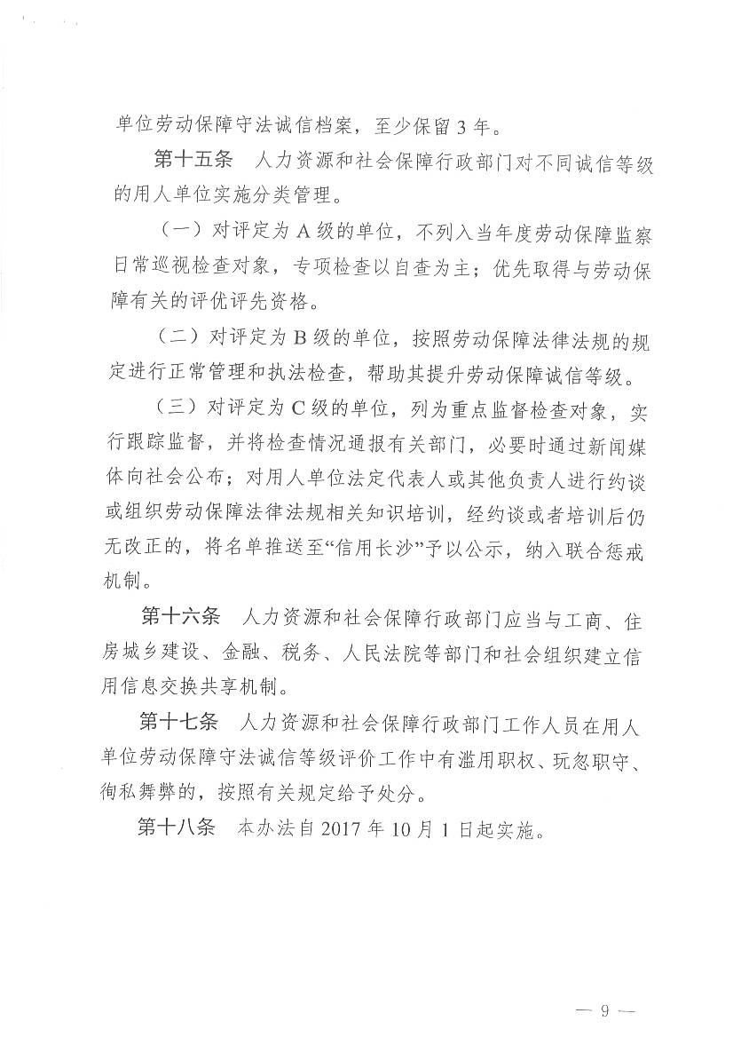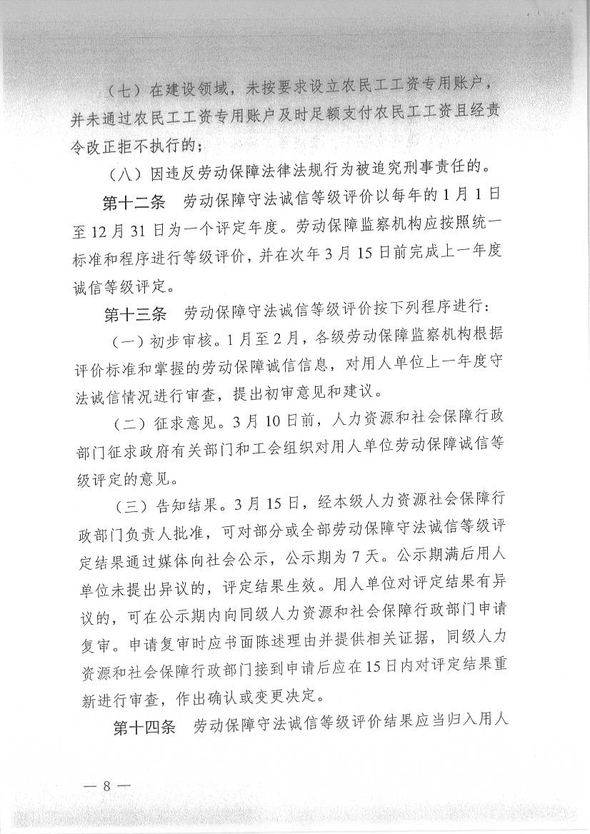 2018年度用人單位勞動(dòng)保障守法誠(chéng)信評(píng)價(jià)工作