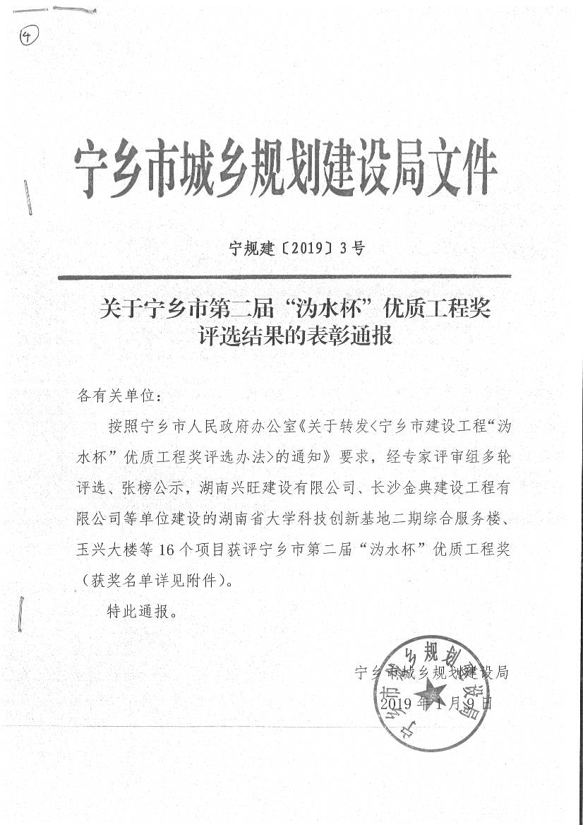 關于寧鄉市第二屆“溈水杯”優質工程獎評選結果的表彰通報